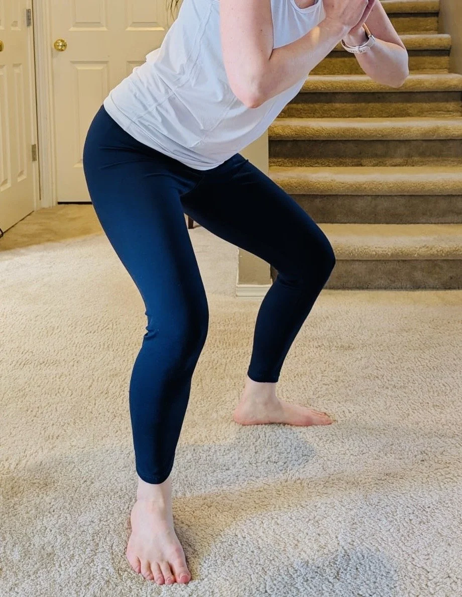Step out to the side into a wide stance, forming about a 90° angle at your knees. Squat down, keeping your toes turned out. Return to standing, then repeat to the other side. Keep the movement slow and controlled. Do 15 reps and 3 sets.